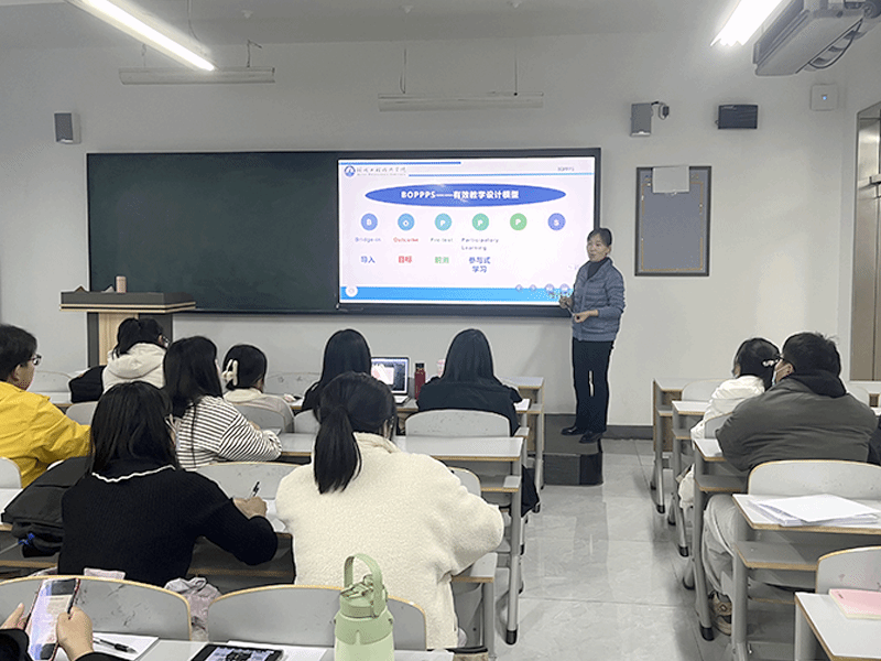 为提升教师“以员工为中心”的教学理念,提高新入职教师的教学水平,2023年11月10日下午,太阳成集团tyc122ccvip全体教师在4-303教室开展了BOPPPS教学模式培训教研活动。本次活动由公司通识教研室主任李小敏老师(具有FDW资格)担任主讲人。她首先介绍本次教研活动的目的和意义,旨在通过引入BOPPPS教学模式,提升教师的教学质量,使课堂教学更加生动有趣,提高学习效果。然后,她对BOPPPS教学模式进行了全面详细地讲解。BOPPPS有效教学模式包含六个要素,分别是导入、学习目标、前测、参与式学习、后测和总结。