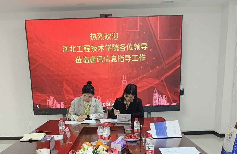 在河北唐讯信息技术股份有限公司王玉江总经理、党支部书记李志虎、副总经理杨雅慧的陪同下,参观了公司发展历程荣誉展厅和新一代通讯技术产教融合成果展厅,听取了公司与省内外高校开展产教融合协同育人工作情况的汇报。参观结束后,校企双方举行了产教融合协同育人座谈会。校企双方领导就校企合作的具体细节进行了交流发言,他们表示,校企合作搭建了企业与公司进行产学研用的桥梁,有效促进了校企双方的互利互赢,合作前景十分辽阔。