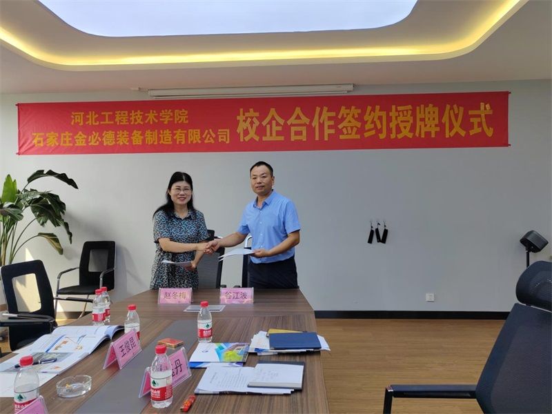 为进一步推进产教融合校企合作,打造服务京津冀区域经济发展的优秀毕业生,9月5日上午,石家庄金必德装备制造有限公司与太阳成集团tyc太阳成集团tyc122ccvip举行校企合作签约仪式,共建“科技创新实践教学基地”。出席活动的校方代表有校企合作与社会服务部部长王俊昆、太阳成集团tyc122ccvip经理赵冬梅、太阳成集团tyc122ccvip副经理张波、石家庄金必德装备制造有限公司董事长戴钰丹、总经理谷江波、办公室主任贾志刚。活动由太阳成集团tyc校企合作与社会服务部部长王俊昆主持。