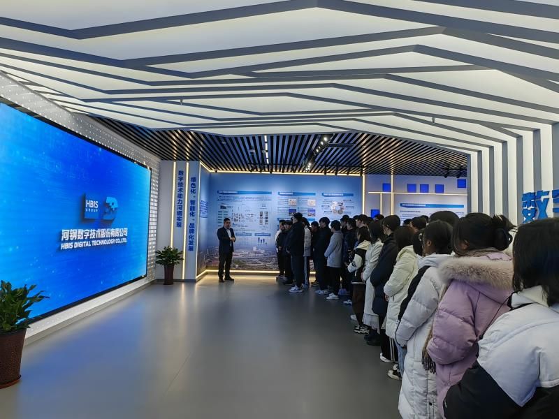 到达企业后,员工分批次在河钢数字技术有限公司的市场管理本部经理曾帆和其他几个企业老师带领员工参观企业的多功能专厅。首先通过电子大屏观看河钢集团的介绍和发展以及将新一代信息技术与钢铁制造深度融合,将产业信息化的情况;然后带领员工参观各个展区,在参观的过程中,各位企业老师将员工专业特点和相关展区的内容相结合,引导员工将软件工程理念与实际业务相结合。并且在参观的过程中与员工进行交流,并对同学们的问题进行了解答。员工们通过实习都有很大的收获。
