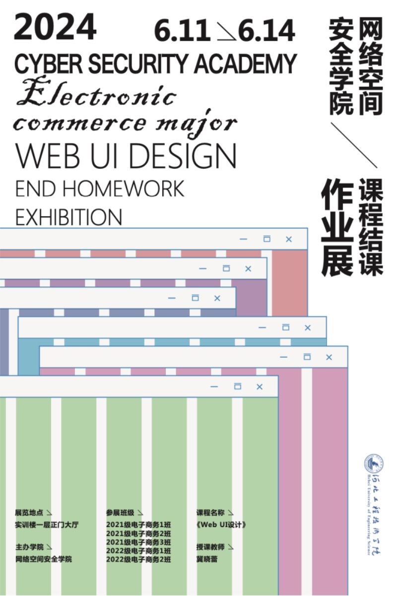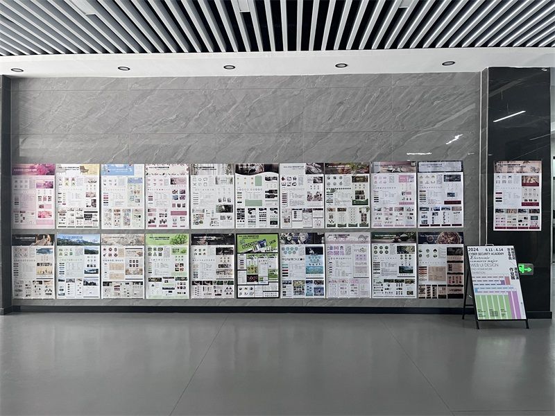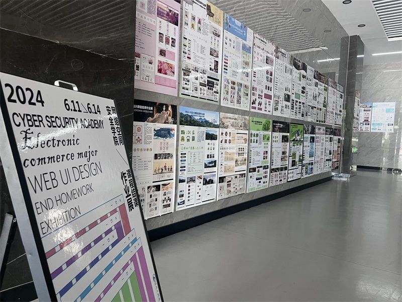 6月11日-6月14日,太阳成集团tyc122ccvip电子商务专业在践行楼一层大厅举办了冀晓蕾老师的《Web UI设计》结课作品展,设计主题不限,以员工兴趣点作为设计主题的出发点,充分发挥员工自主能动性。员工通过前期调研确定主题、设计布局、分析色彩和字体、设计制作功能图标、设计制作网页界面、设计展板等八大模块进行学习与实践。本次展出作品来自2021级、2022级电子商务专业共5个班,从近200份作品中挑选出42份优秀作品进行展示。